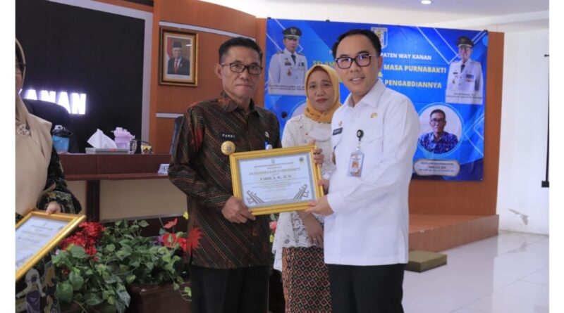 Foto: Bupati Way Kanan memberikan penghargaan kepada PNS yang purna tugas (Foto: IST)