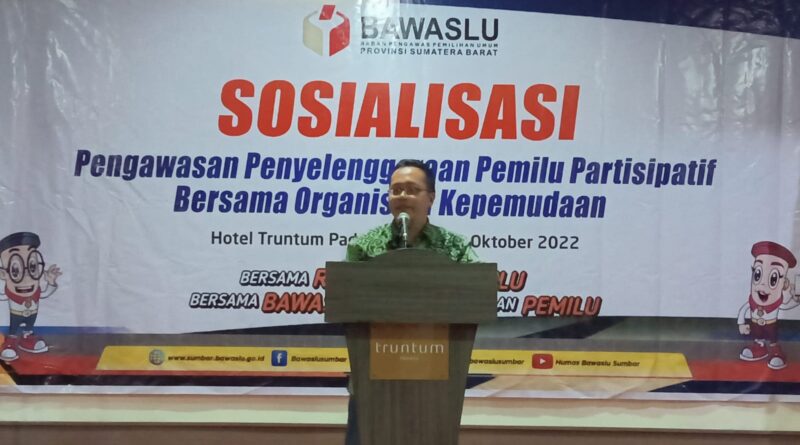 “Keberadaan pengawasan pemilu harus memberi warna dalam penyelenggaraan pemilu, karena itu Bawaslu harus menjadi lembaga yang dipercaya, sehingga harapan adanya perbaikan dalam penyelenggaraan pemilu dalam terwujud,” ujar Alni dalam sambutannya saat membuka Sosialisasi Pengawasan Penyelenggaraan Pemilu Partisipatif Bersama Organisasi Kepemudaan, Sabtu (29/10/2022) di Hotel Truntum Padang.