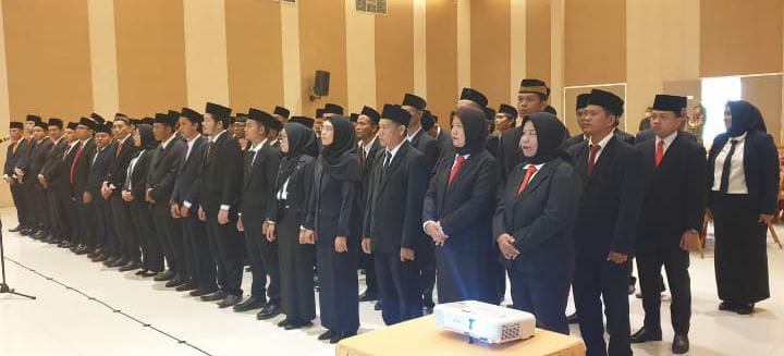 Foto: 72 Panitia Pengawas Pemilihan Umum Kecamatan Kabupaten Lahat saat dilantik (Foto: IST)