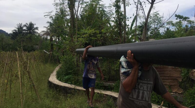 Foto: Para Karyawan membawa pipa untuk memperbaiki irigasi (Foto: IST)