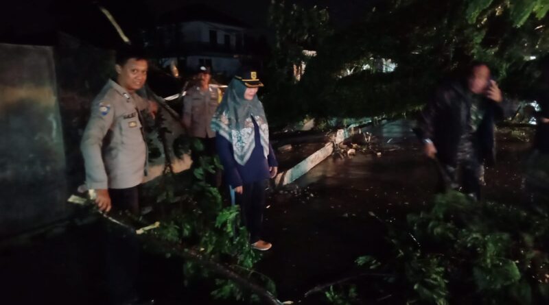 Foto: Jajaran Kepolisian, TNI, petugas Damkar dan warga mengevakuasi pohon tumbang (Foto: IST)