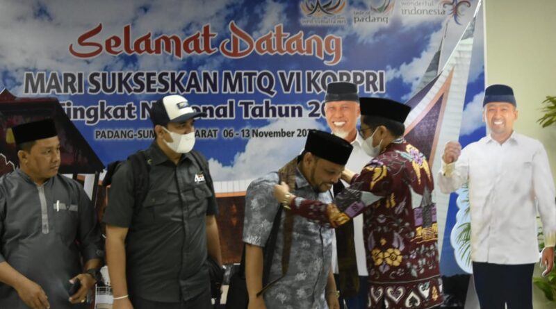 Padang, MZK News – Sekretaris DPRD Provinsi Sumatra Barat (Sumbar) Raflis menyambut kedatangan kontingen Musabaqah Tilawatil Qur’an (MTQ) Daerah Istimewa Nangroe Aceh Darusalam, Sabtu (5/11) di Bandara