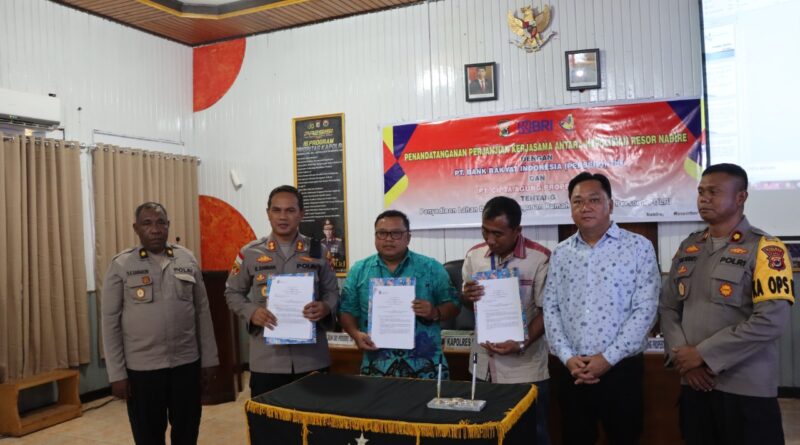 Foto: Kapolres Dogiyai bersama pejabat PT Bank BRI dan PT Cipta Agung Propertindo setelah menandatangani MoU (Foto: IST)