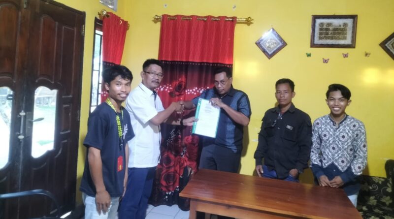 Foto: Ketua DPD PJS Sultra Arsan Tonto menyerahkan SK Ketua DPC PJS Sultra Herman Latif (Foto: IST)