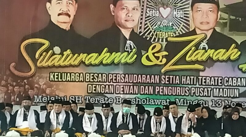 Madiun, MZK News – Tak kurang dari 4400 warga SH Terate dari Cabang Jember yang dipimpin oleh Ketua SH Terate Cabang Jember H. Jono Wasinudin, S.Kep., M.Si., dan Ketua Dewan Cabang H. Muhtaris menggelar kegiatan silaturahmi dan ziarah leluhur dengan Dewan dan Pengurus Pusat Madiun melalui “SH Terate Bersholawat”. Acara berjalan dengan khidmat dan khusuk di Gedung Graha Krida Budaya, Padepokan Agung SH Terate Pusat Madiun, Minggu (13/11/2022).