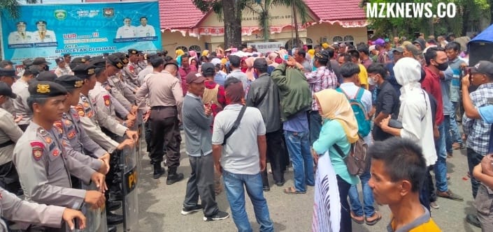 Lahat, MZK News – Lebih kurang 1500 massa anggota Asosiasi Tambang Rakyat (Astabara) dan KUD Merapi Jaya Kabupaten Lahat Senin (14/11/2022) pukul 09.00 WIB yang hendak menggelar demo aksi unjuk rasa di kantor Pemkab. Lahat, terhalang blokade Polres Lahat, masa akhirnya berorasi di depan Kantor Pos jalan Kolonel Burlian Kota Lahat, Kabupaten Lahat.