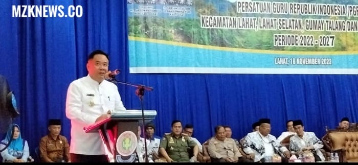 Lahat, MZK News – Bupati Lahat Cik Ujang, yang juga Pembina Persatuan Guru Republik Indonesia (PGRI) Kabupaten Lahat, menghadiri dan menyaksikan Ketua PGRI Kabupaten Lahat Dr. Hasperi, menyatukan pelantikan dan mengukuhkan Kepengurusan PGRI 4 Kecamatan, Jum’at (18/11/2022) bertempat di Gedung Kesenian Kabupaten Lahat.