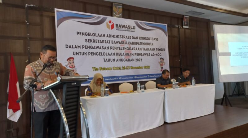 Padang, MZK News – Kepala Sekretariat Bawaslu Provinsi Sumatra Barat Karnalis Kamaruddin mengatakan, pihaknya melalui bagian SDM melakukan pelaporan kepada Bawaslu RI membentuk Panwas ad-hoc. Realisasi anggaran Bawaslu Sumbar sampai November 2022 baru mencapai 59 persen.