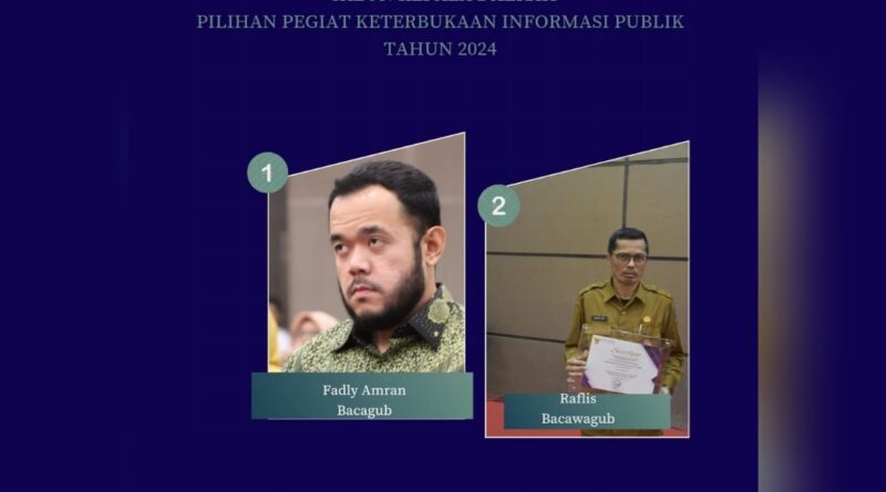 Padang, MZK News – Yuliadi Chandra aktivis keterbukaan informasi publik mengatakan, pihaknya bersepakat memilih Fadly Amran dan Raflis dalam pemilihan kepala daerah tahun 2024, karena baru saja menerima Anugerah Achiepment Motivation Person (AMP) dari acara puncak Anugerah Keterbukaan Informasi tahun 2022 digawangi Komisi Informasi Sumbar. Artinya Tokoh Fadly Amran dan Raflis memihak kepada keterbukaan.