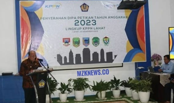 Lahat, MZK News – Kantor Pelayanan Perbendaharaan Negara (KPPN) Lahat mengadakan kegiatan Penyerahan Daftar Isian Pelaksanaan Anggaran (DIPA) Petikan tahun anggaran 2023 yang dihadiri oleh Bupati Lahat, Cik Ujang yang dalam hal ini diwakili oleh Wakil Bupati Lahat H. Haryanto, Bertempat di Aula Kantor Pelayanan Perbendaharaan Negara (KPPN) Lahat, Kamis (15/12/2022).