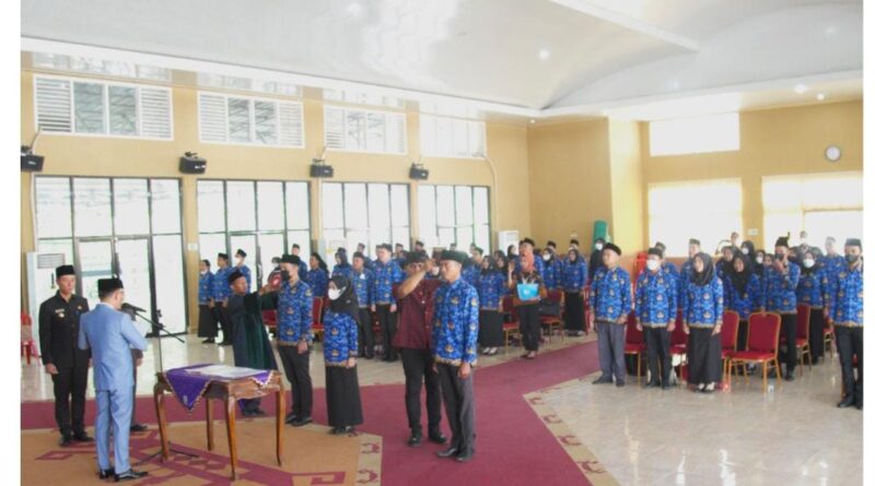 Diakhir sambutannya Bupati juga menyampaikan ucapan selamat kepada 72 Orang CPNS dan 9 Orang PNS yang mengikuti Pengambilan Sumpah.
