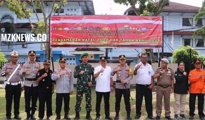 Muara Enim, MZK News – Dalam rangka menyambut perayaan Natal Tahun 2022 dan Tahun Baru 2023 (Nataru) Penjabat (Pj) Bupati Muara Enim Kurniawan, bersama Kapolres Muara Enim AKBP Andi Supriadi, Dandim O406 Muara Enim Letkol Arh Rimba Anwar, melaksanakan apel Gelar Pasukan Tahun 2022, yang dilaksanakan di Halaman Polres Muara Enim, Rabu pagi (22/12/2023).