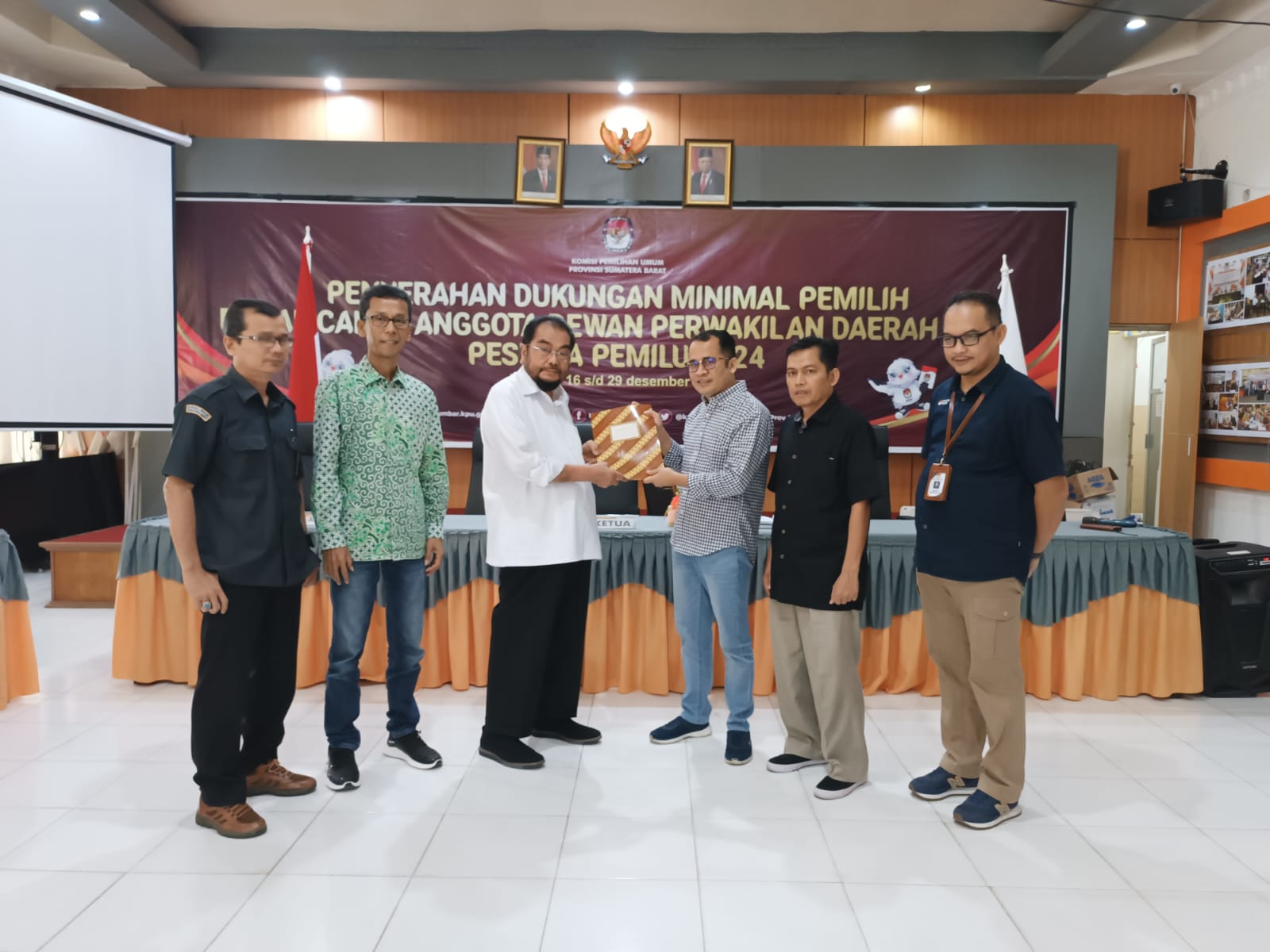 Foto: Ketua Badan Kehormatan (BK) DPD RI, H. Leonardy Harmainy, SI.P., M.H., menyerahkan berkas syarat dukungan kepada KPU Sumbar (Foto: IST)