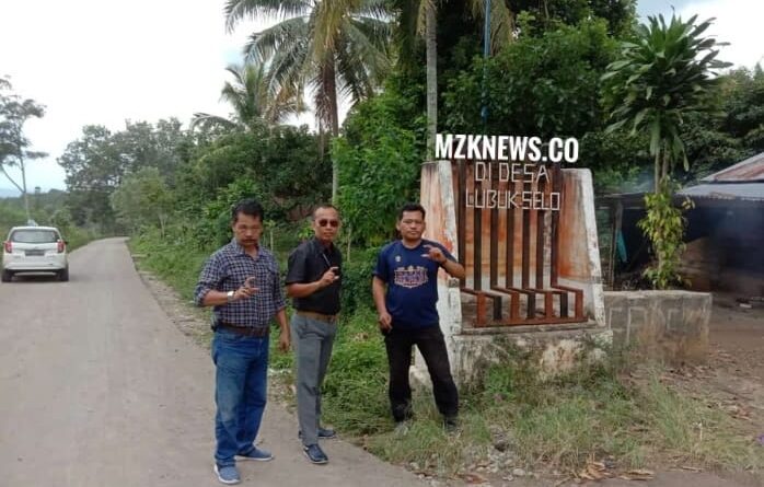 Foto: Tim awak media saat di lokasi Jalan Cor Beton yang baru dibangun di Desa Lubuk Selo (Foto: IST)