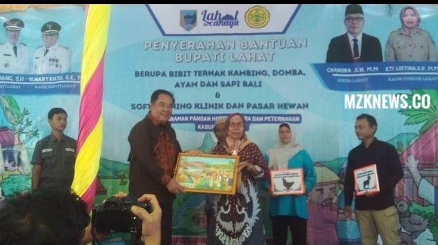Lahat, MZK News – Dalam meningkatkan perekonomian masyarakat desa di bidang Peternakan, Bupati Lahat Cik Ujang, secara simbolis menyerahkan bantuan bibit ternak kambing, domba, ayam dan sapi Bali kepada masyarakat melalui Kelompok Tani (Koptan) Desa Lubuk Selo sekaligus melakukan soft opening klinik dan pasar hewan Dinas Tanaman Pangan Hortikultura dan Peternakan Kabupaten Lahat, Rabu (28/12/2022), yang digelar di Desa Lubuk Selo, Kecamatan Gumay Ulu, Kabupaten Lahat, Provinsi Sumatra Selatan.