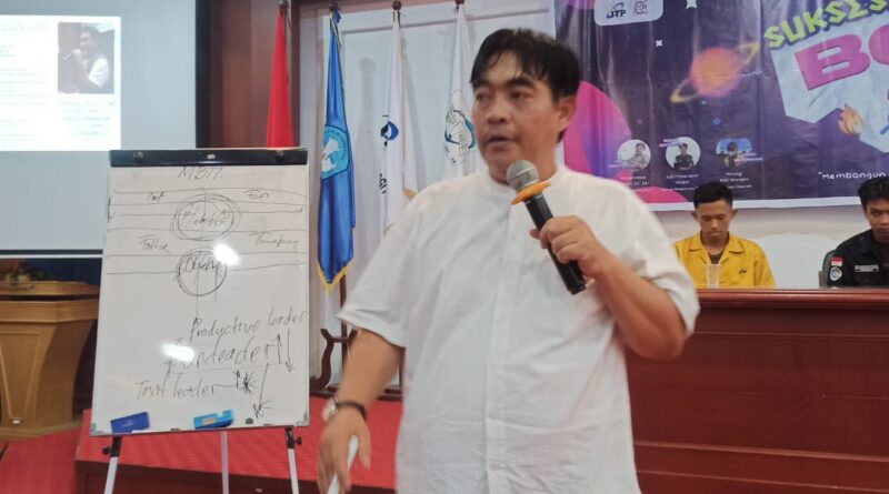 Foto: M. Zuhrizul saat memaparkan motivasi kepemimpinan kepada Mahasiswa ITP (Foto: IST)
