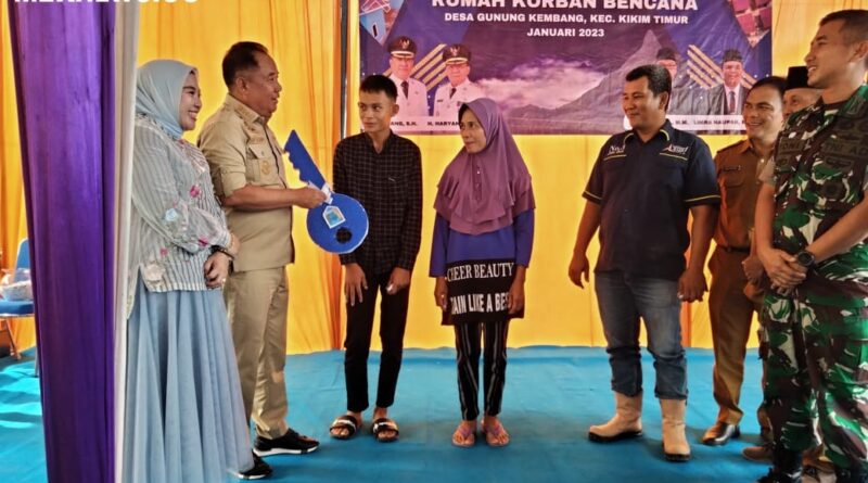 Lahat, MZK News – Bupati Lahat Cik Ujang didampingi Ketua TP. PKK Lidyawati Cik Ujang, Senin (9/01/2023), meresmikan dan menyerahkan kunci 32 unit rumah tipe 36 kepada korban musibah banjir bandang, di Desa Gunung Kembang, Kecamatan Kikim Timur, Kabupaten Lahat, Provinsi Sumatra Selatan.