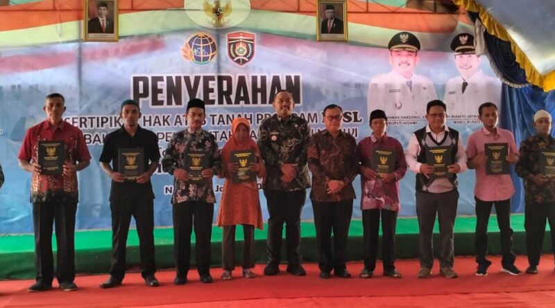 Ngawi, MZK News – Penyerahan sertifikat hak atas tanah program PTSL oleh Bupati Ngawi secara simbolis, dilaksanakan di Desa Tulakan pada pukul 09.00 WIB sampai selesai.