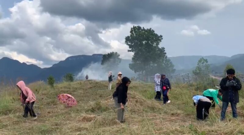 Mahasiswa KKN Tematik UNP Bersihkan Spot Camping Bukik Pahoruso