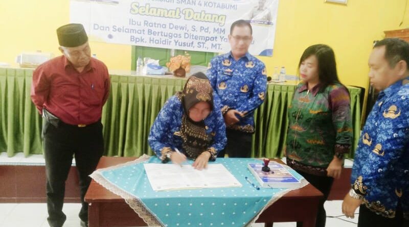 Foto: Penandatanganan serah terina jabatan di SMAN 04 Kotabumi (Foto: IST)