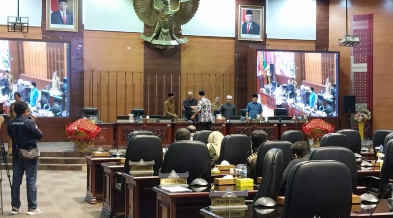 Padang, MZK News – Dewan perwakilan Rakyat Daerah (DPRD) Provinsi Sumatra Barat menggelar sidang paripurna dengan agenda penetapan usul prakarsa Rancangan Peraturan Daerah (Ranperda) tentang Pokok-pokok kebudayaan Sumatra Barat, Senin (30/01/2023) di ruang sidang utama kantor DPRD Sumbar.