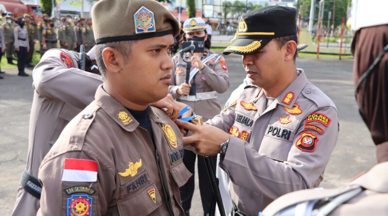 Foto: Kapolres Ketapang memasangkan pita kepada personel (Foto: IST)