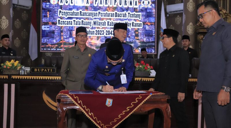 3. Penetapan Rancangan Peraturan Daerah Tentang Rencana Tata Ruang Wilayah Kabupaten Way Kanan Tahun 2023-2043 oleh Bupati Way Kanan.