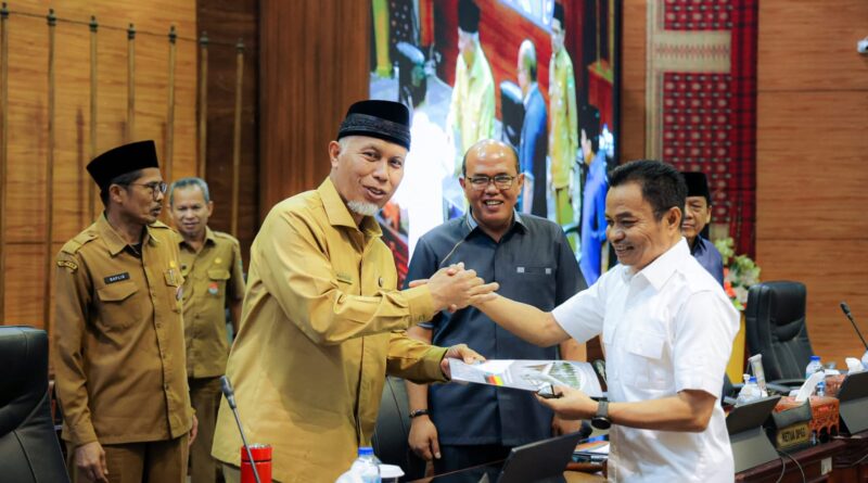 Foto: Juru bicara Komisi V DPRD Sumbar, Hidayat memberikan berkas kepada Gubernur Sumbar (Foto: IST)