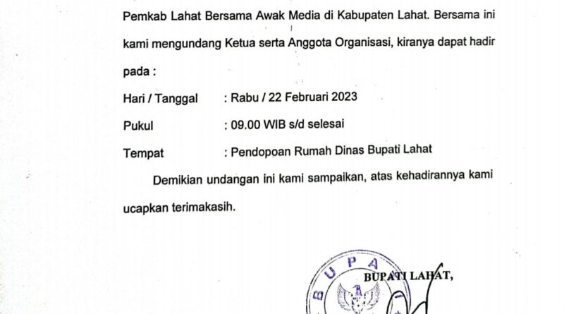 Foto: Surat Undangan kepada rekan-rekan wartawan dari Pemerintah Kabupaten Lahat (Foto: IST)