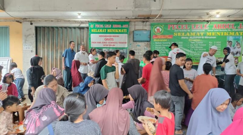 Berbagai lapisan masyarakat yang turut hadir menikmati sajian makan gratis berupa nasi uduk, pecel lele, dan ayam gorang serta berbagai hidangan lainnya.