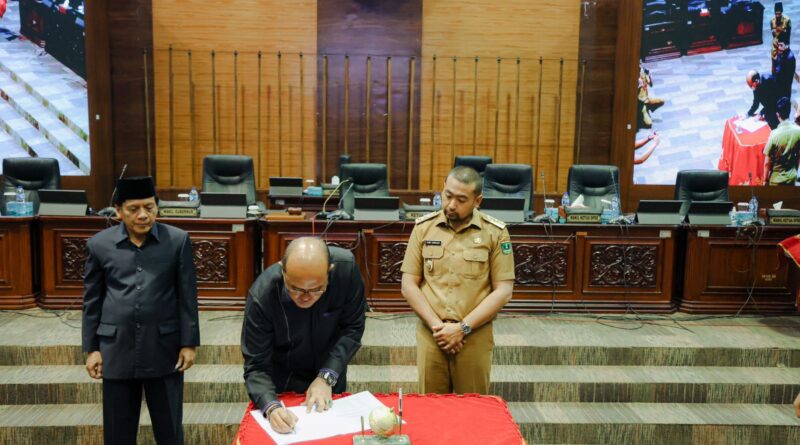 Foto: Ketua DPRD Sumbar, Supardi saat melakukan penandatanganan Perda di Rapat Paripurna (Foto: IST)