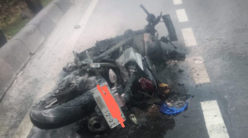 Diduga Korsleting di Bagian Tangki Bensin, Motor Hangus Terbakar