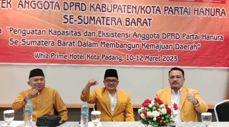 Padang, MZK News – Selama 3 hari 10-12 Maret 2023, Partai Hanura mengadakan Bimtek anggota DPRD Kabupaten/kota Partai se-Sumatra Barat, dengan mengambil tema “Penguatan Kapasitas dan Eksistensi anggota DPRD se-Sumatera Barat dalam Membangun Kemajuan Daerah” berlangsung di Whiz Prime Hotel Kita Padang.