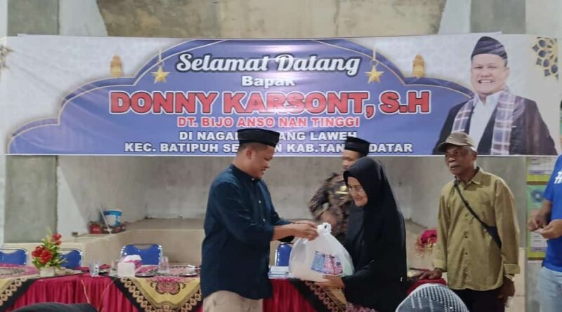 Disamping itu, Wali Nagari Sumpur tersebut juga menjelaskan kepada masyarakat penerima bantuan tersebut bahwa Donny Karsont merupakan putra daerah asli Batipuh Selatan. Ia menyampaikan bahwa Donny Karsont adalah pengusaha muda asal Sumatra Barat yang saat ini telah memiliki lebih kurang dua puluh lima gerai yang fokus menjual Hand Phone.