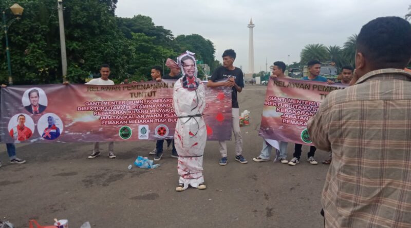 “Kami mendesak Presiden Jokowi untuk mencopot atau mengganti Menteri BUMN dan memecat Direktur PT Pertamina. Mereka berdua harus bertanggung atas kejadian kebakaran di Depo Plumpang, Jakarta Utara Jumat (03/03/2023) yang menelan 17 korban jiwa dan puluhan luka berat/ringan,” kata Joshua Korlap Demonstrasi Relawan Pemenangan Jokowi, dalam orasinya.