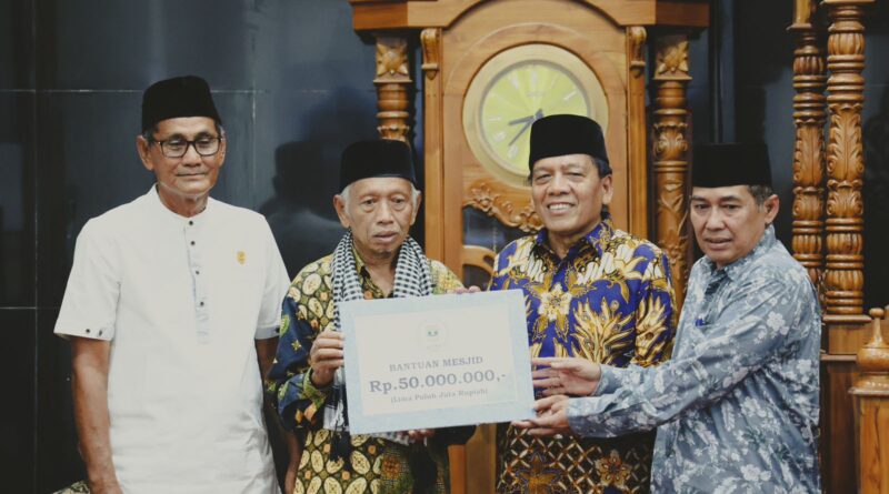 Di akhir sambutannya, Suwirpen Suib menyerahkan bantuan kepada Masjid Baitul Makmur sebesar 50 juta rupiah untuk renovasi serta keperluan kebutuhan Masjid tersebut.