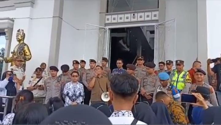 Usai memberikan arahan di depan aksi massa, Fadli Sudria tetap berkomitmen untuk selalu memperjuangkan nasib tenaga honorer di Provinsi Jambi.