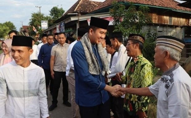 Foto: Plt. Bupati Kab. Muara Enim, Kaffah disambut warga sekitar Masjid Darussalam Ds. Rambang Baru, Kec. Rambang kegiatan Safari Ramadan (Foto: IST)