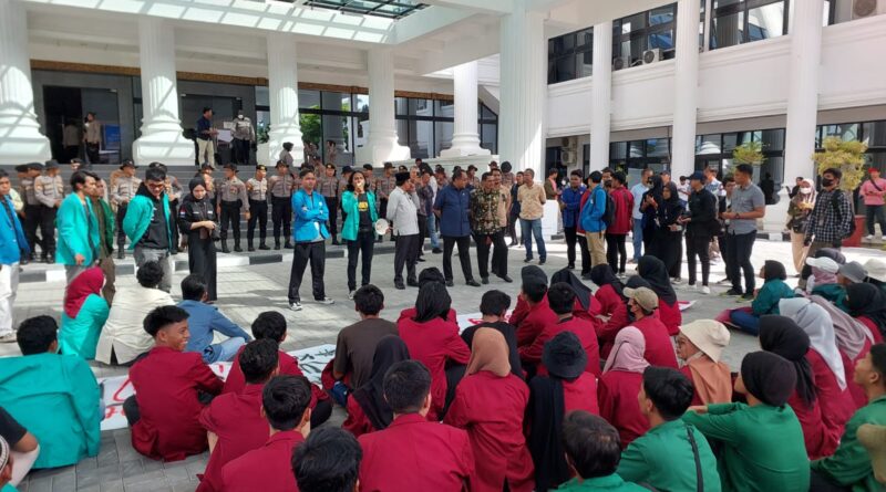 Foto: Perwakilan dari DPRD Sumbar saat menemui Mahasiswa yang menggelar aksi (Foto: IST)