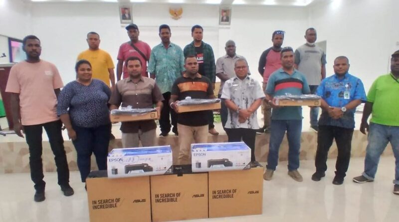 Aimas, MZK News – Penjabat Bupati Sorong Yan Piet Moso memberikan bantuan berupa tiga paket komputer dan laptop yang dilengkapi dengan printer kepada tiga asosiasi pengusaha Orang Asli Papua (OAP) di Aquarius Hotel Aimas, Kamis (6/4/2023). Bantuan tersebut diberikan kepada tiga asosiasi pengusaha OAP, masing-masing mendapatkan satu unit.