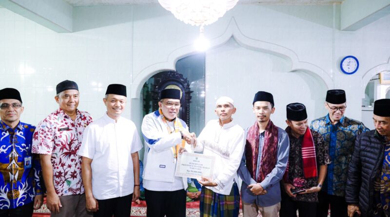 Foto: Ketua DPRD Sumbar memberikan bantuan untuk pembangunan masjid saat Safari Ramadan (Foto: IST)