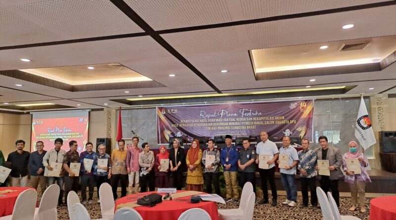 Padang, MZK News – Hasil pleno rekapitulasi dukungan Bakal Calon DPD RI, verifikasi faktual tahap dua untuk 8 bakal Calon DPD RI, akhirnya memutuskan 8 Calon DPD lagi lolos.