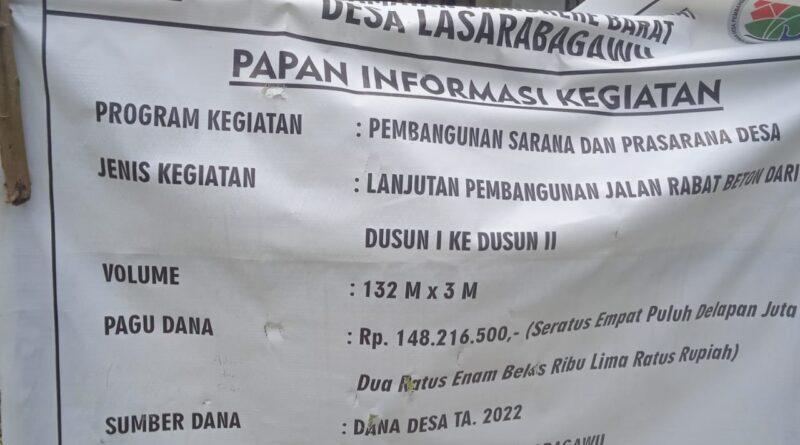 WG mengungkapkan, bahwa kegiatan anggaran tahun 2022 tidak jelas. Pembangunan rabat beton sebesar Rp148.216.500,00 di dusun 1 dan dusun 2 dengan ukuran 132m X 3m, sampai saat ini belum selesai.