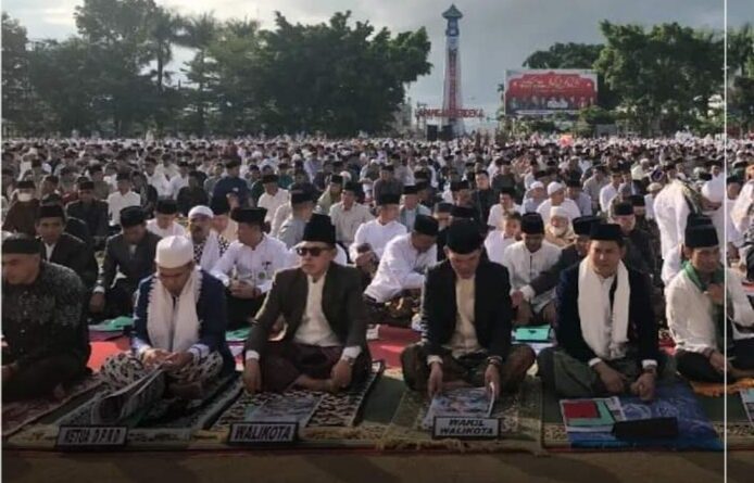 Sungai Penuh, MZK News – Ketua DPRD kota Sungai Penuh dan Pemerintah Kota Sungai Penuh menggelar Salat Idul Fitri 1444 H, seperti tahun-tahun sebelumnya, salat Idul Fitri digelar di Lapangan Merdeka, Sabtu (22/4).