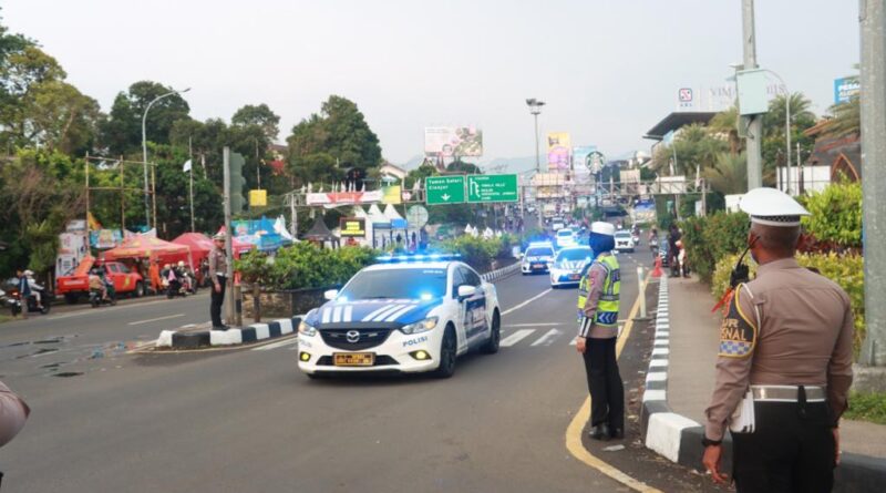 Foto: Jajaran Personel Polres Bogor melakukan pengaturan lalu lintas di wilayah Puncak (Foto: IST)