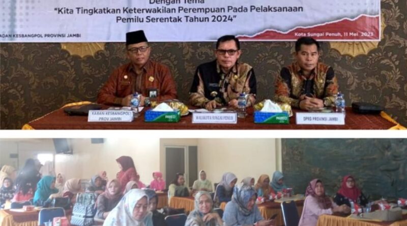 Sungai Penuh, MZK News – Di Sungai Penuh, tingkat keterwakilan perempuan di Pemilu masih perlu adanya peningkatkan, maka dari itu dalam upaya meningkatkan keterwakilan perempuan pada Pemilu 2024 mendatang, Badan Kesatuan Bangsa Dan Politik (Kesbangpol) Provinsi Jambi menggelar kegiatan Sosialisasi Pendidikan Politik Tahun 2023 di Aula Aroma Hotel Kota Sungai Penuh, Kamis (11/5/2023).
