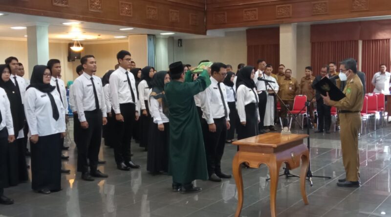 Foto: Bupati Kutai Timur mengambil sumpah dan menyerahkan SK pengangkatan 37 ASN di Lingkungan Pemkab Kutim, Senin 15 Mei 2023 (Foto: Arie Firdaus)