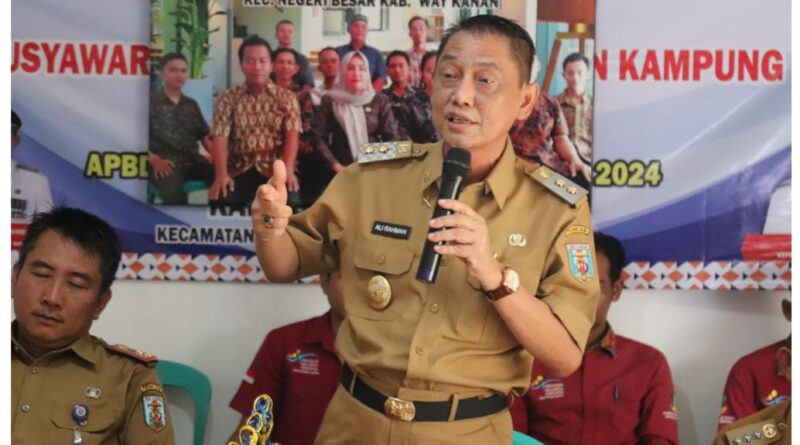 Foto: Wakil Bupati Way Kanan saat menyampaikan pembinaan kepada KPM PKH (Foto: IST)