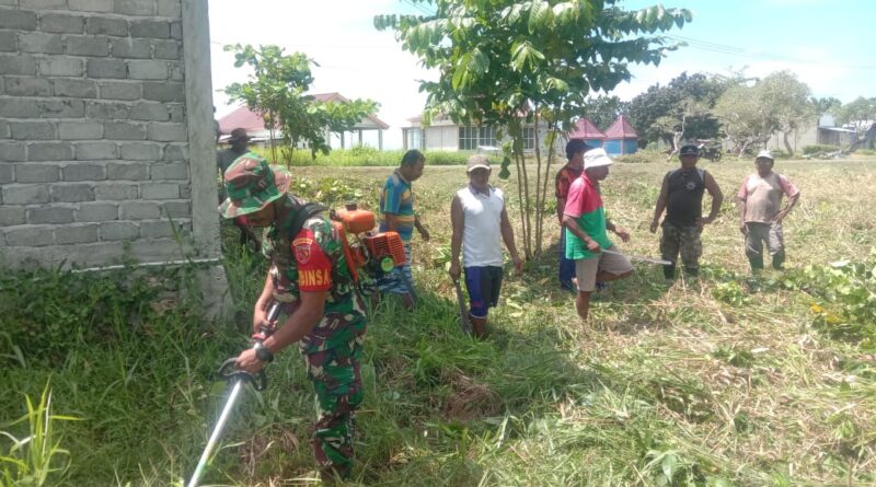 Foto: Babinsa Koramil 02 bere-bere bersama Warga melakukan gotong royong pembersihan Desa (Foto: IST)