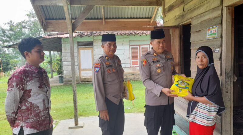 Foto: Kapolsek Sungai Rumbai bersama Anggota membagikan bantuan kepada warga kurang mampu (Foto: IST)